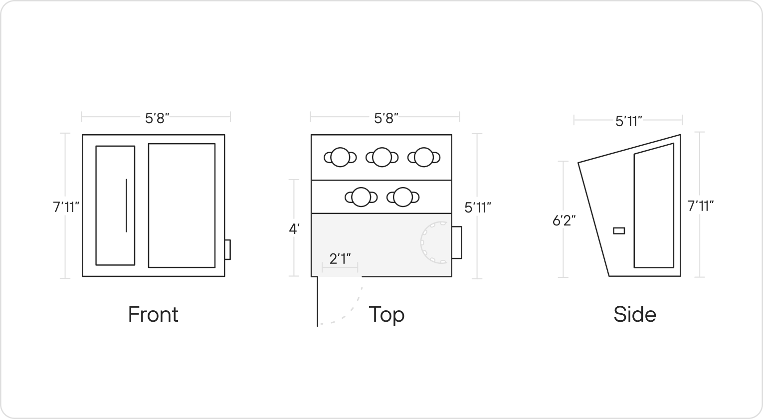 - Width: 5'8" (68 inches)