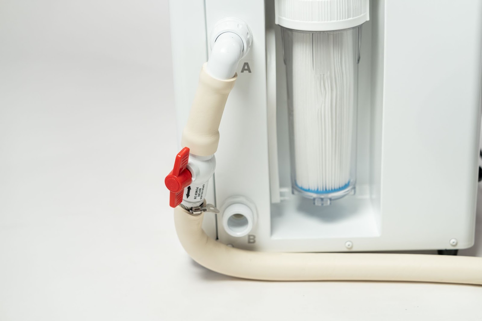 - Note: the white valve is the drain and should remain closed until you need to change out the water.