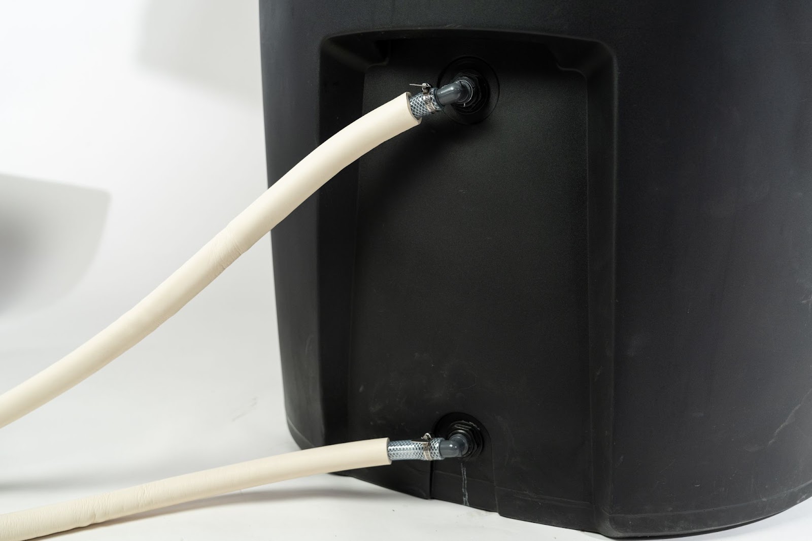 - Place a hose clamp over the hose before connecting it to the barbed elbow.